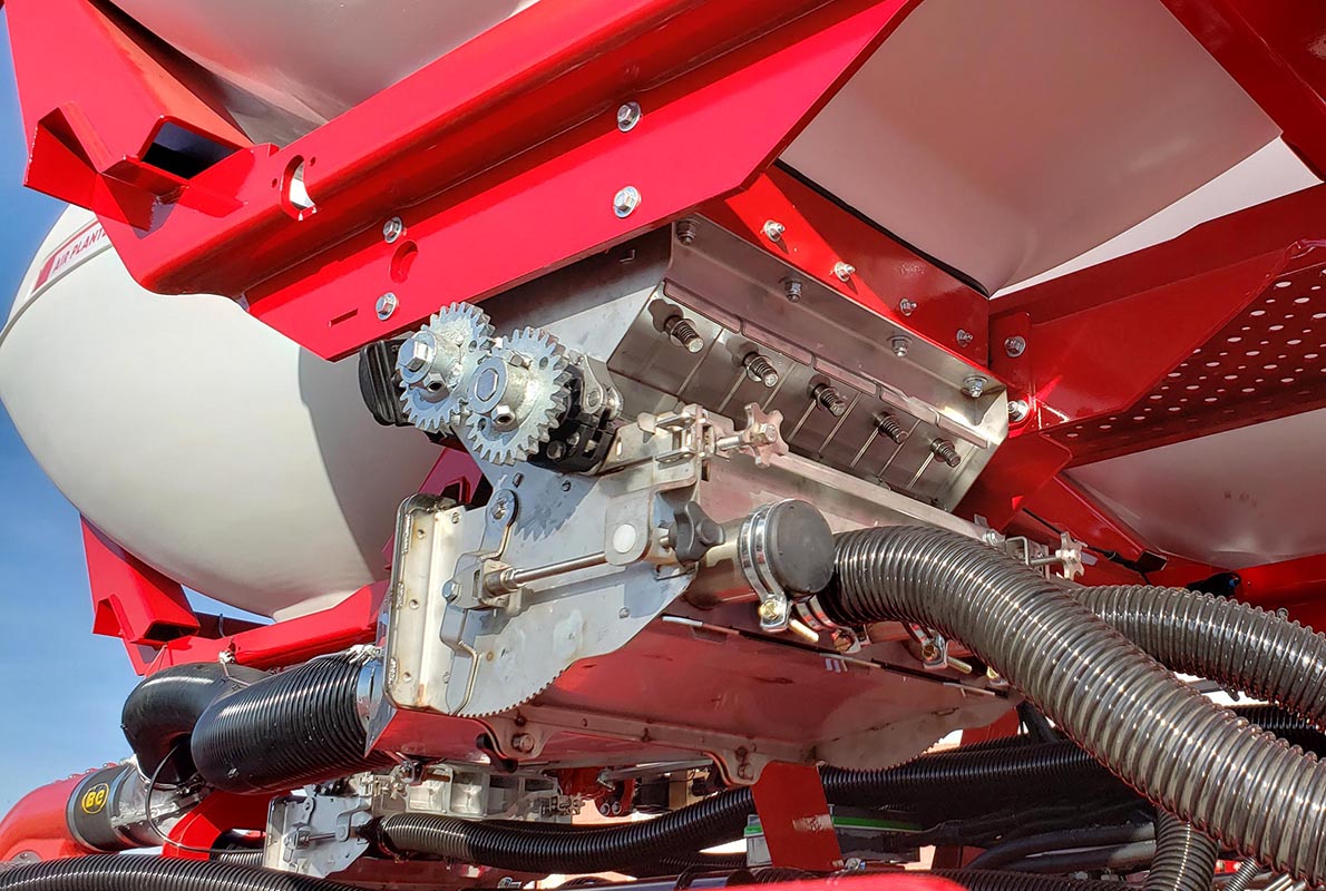 Nuestra Plantor es una sembradora de alta productividad y gran autonomía, con 3 tolvas de polietileno de 2400 litros cada una, y un ancho de trabajo de 12,60 a 18,90 metros, que gracias a nuestro sistema patentado de plegado automático permite reducir a 3,90 metros el ancho de la máquina para que esta sea fácil de transportar.